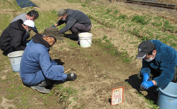 現在は、玉ねぎの苗とじゃがいもの種芋を植えています。
